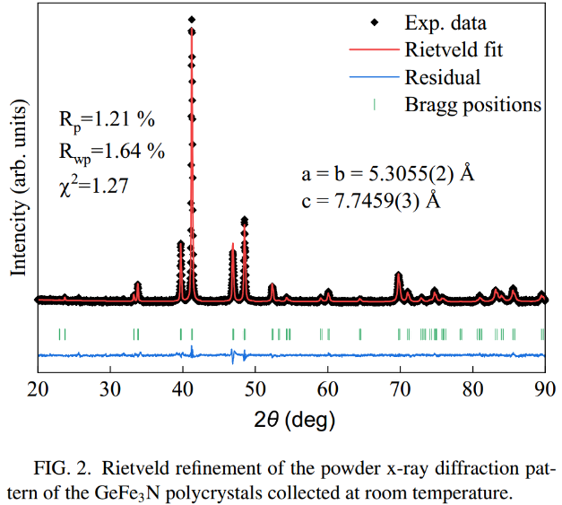 To better understand the different magnetic behaviors of these two Fe sites, the researchers conducted a variety of experimental studies. First, polycrystalline GeFe₃N samples were prepared by the traditional solid-state reaction method, and the phase purity was confirmed by X-ray diffraction measurement.