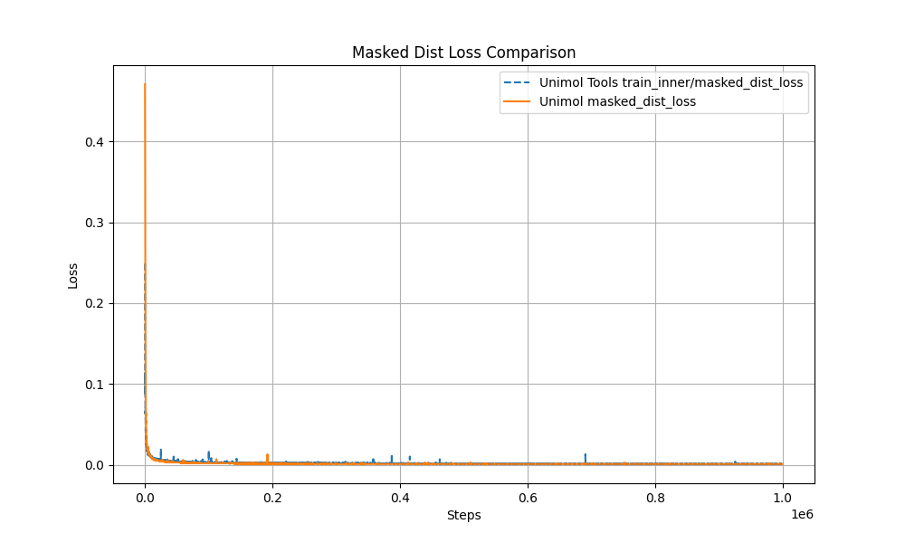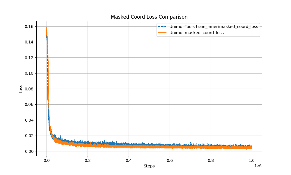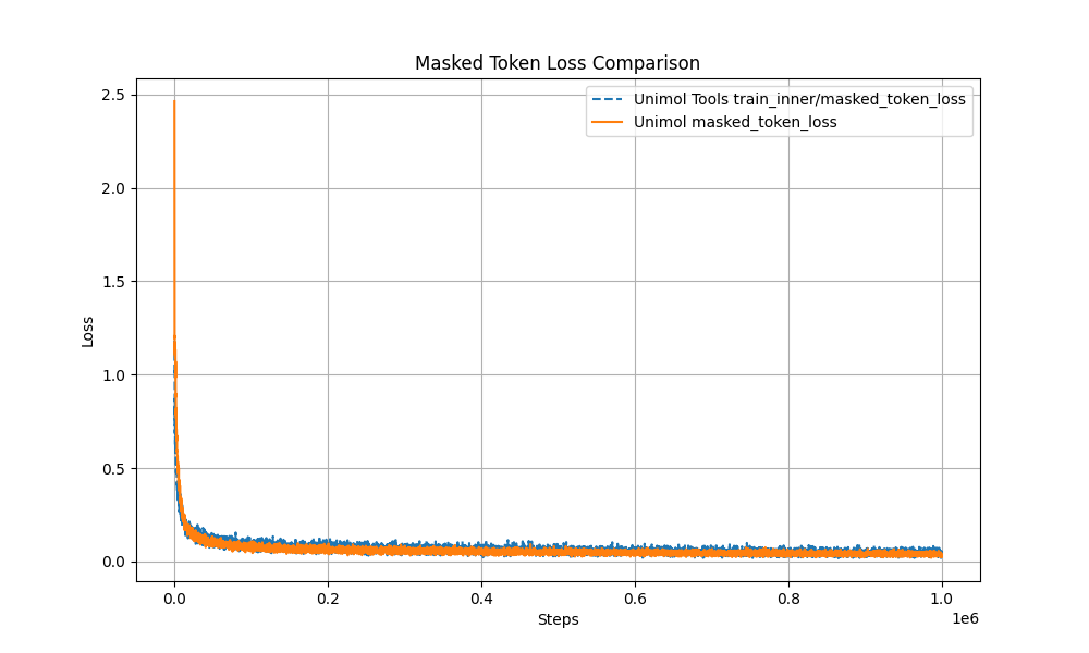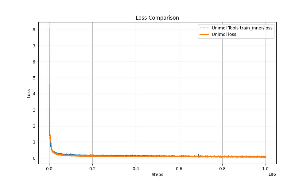 - Performance and reproducibility guarantee: Pre-training curve is highly consistent with the original Uni-Mol;